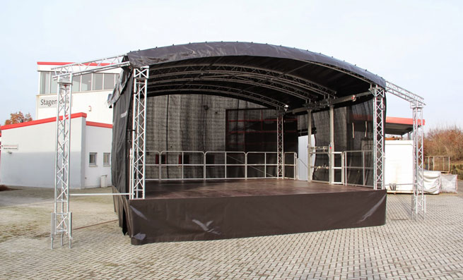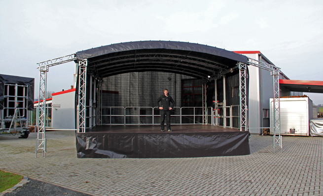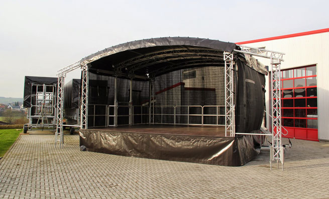 The elegant stage model Stagemobil LR with a stage area of 7 m x 6 m is our luxurious counterpart to the Stagemobil L. Impresses with particularly attractive appearance, combined with functional sophistication for the discerning customer. Only one person also built this representative mobile stage in just 45 minutes. Quick to set up, easy to use, especially in optics!