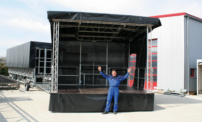 The Stagemobil S with 17 m² stage area offers an ideal platform for demos, solo entertainers or small bands. With a small floor space and extremely flexible usage options, we have designed a lightweight model, which is ready for use in no time. A must for every event technician, because with two variable installation heights, the model is ideal for use as “front of the house“.